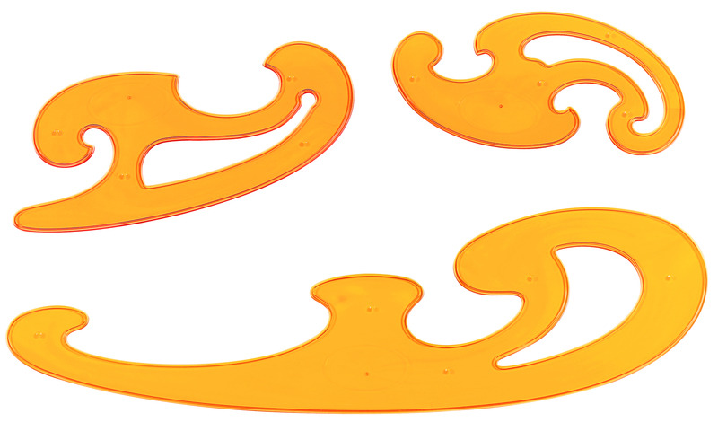 Burmester sjablonen, 3-delige set van verschillende maten. 1mm dik, in plastic etui