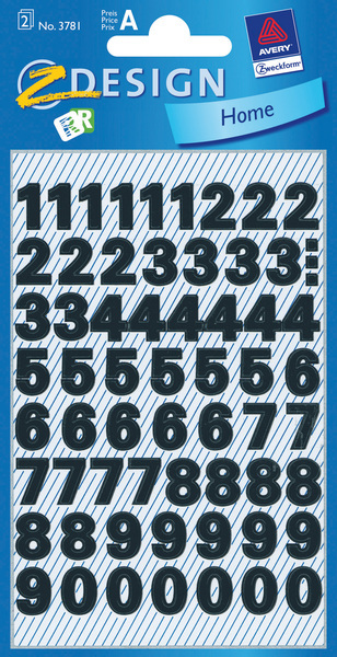 Avery AV-3781 Cijferetiket 2 Vel Watervast Zwart 10 Setjes met 2 Vel