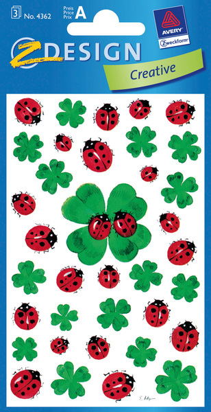 Avery AV-4362 Etiket 3 Vel Klavers/Lieveheersbeestjes 10 Setjes met 3 Vel