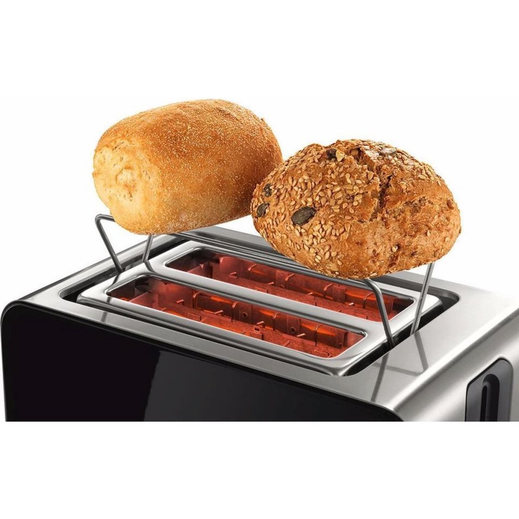 - Blijft brood klemzitten? Dan schakelt de broodrooster automatisch uit. Geen zorgen dus over het verbranden van je brood of gevaarlijke situaties. Ochtenden kunnen al hectisch genoeg zijn.