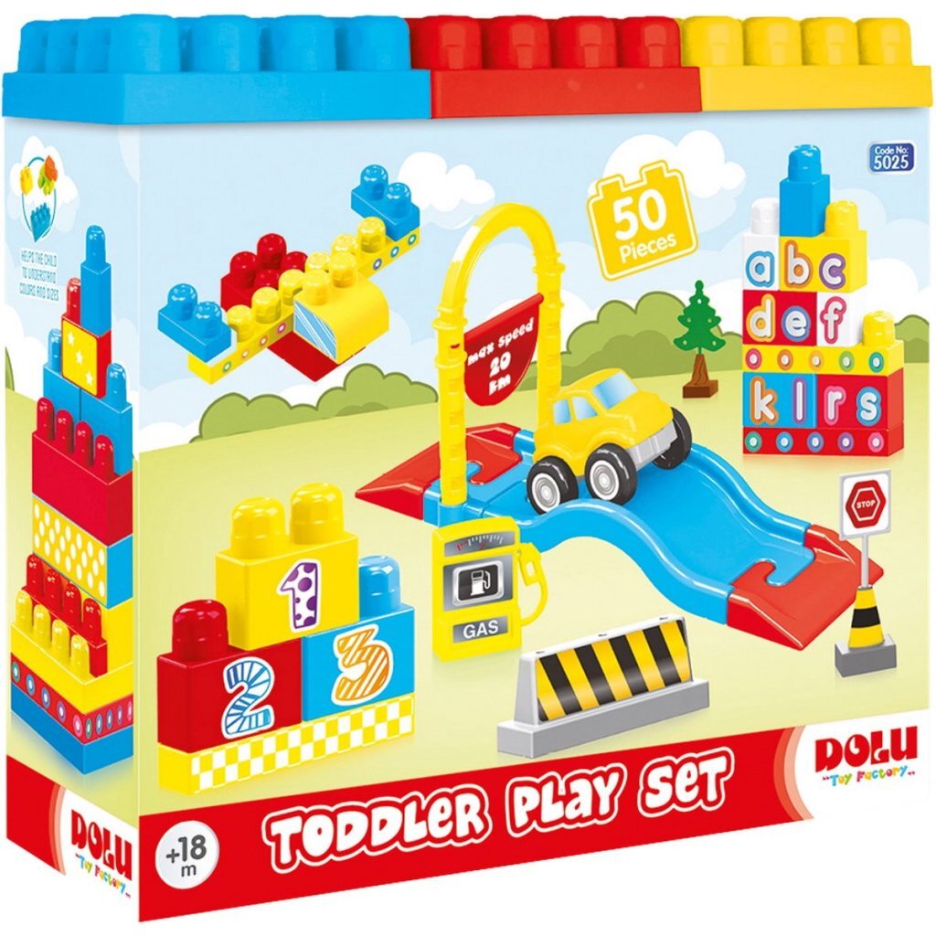 Met de vrolijk gekleurde blokken zijn de mogelijkheden oneindig. Daarnaast heeft de set verschillende items om mee te spelen, zoals verkeersborden, een tankstation en zelfs een autootje en kleine helling om overheen te rijden! Tevens worden er stickers bijgeleverd om de blokken te versieren en verschillende letters en cijfers te leren. 50-delig. Geschikt voor kindjes vanaf 18 maanden.