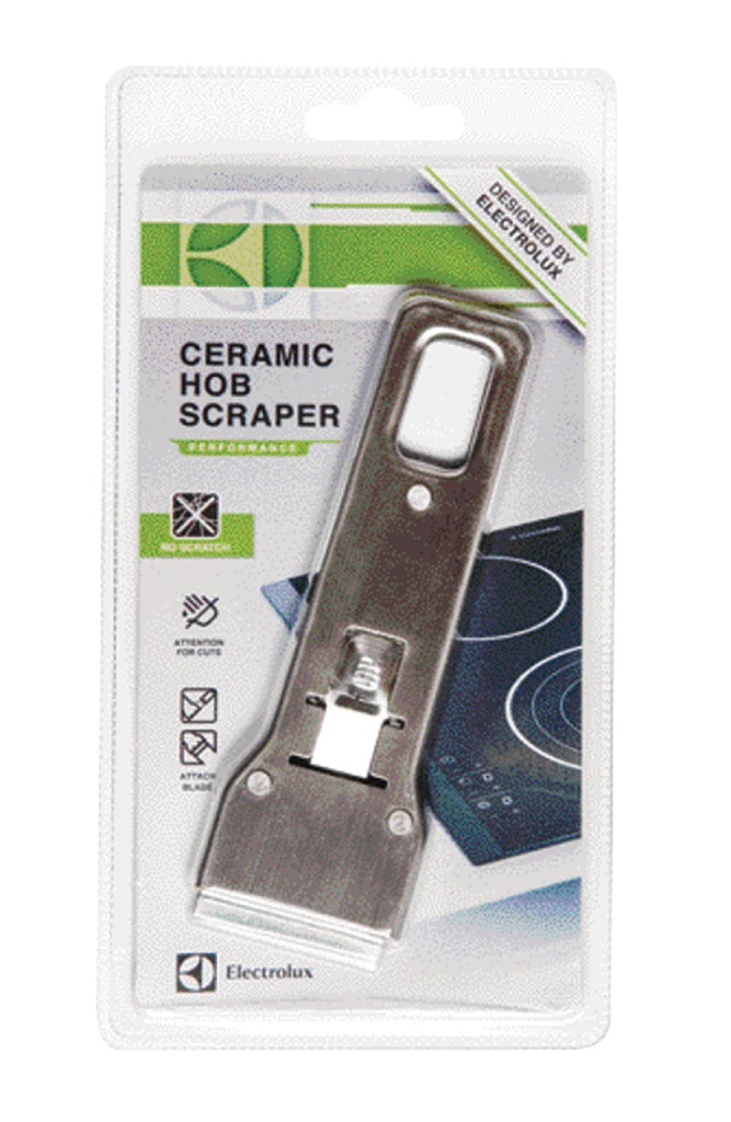 Deze duurzame, lichtgewicht schraper is voor het onderhoud van keramische kookplaten. Het verwijdert aangebrande etensresten en hardnekkige vlekken eenvoudig en zonder dat het oppervlak van de keramische kookplaat bekrast.