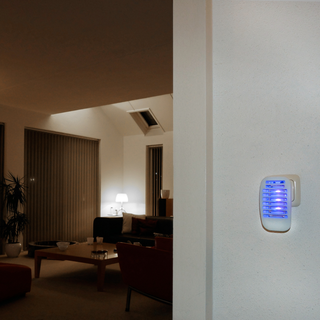 - De UV lamp trekt insecten aan en lokt hen naar het inwendige rooster dat hen doodt
