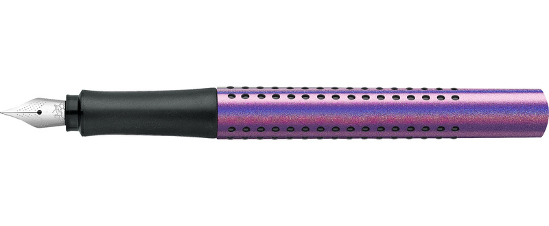 Grip Glam editie, het concept Grip 2011 kenmerkt zicht met een doordacht greepdesign in diverse kleuren en een uitgekiende ergonomie. De karakteristieke knoppen passen bij de kleur van de schacht. Deze Glam serie is een echte ‘Eye-catcher’! De houderkleuren bestaan uit een soort iriserende parelmoer glinstering. Dankzij de ergonomische zacht rubberen gripzone zorgt de vulpen GRIP voor urenlang onvermoeid schrijven. De vulpen is voor zowel links- als rechts handigen en voorzien van een clip en stevige penpunt. Schrijfdikte F. Houderkleur: Zilver.