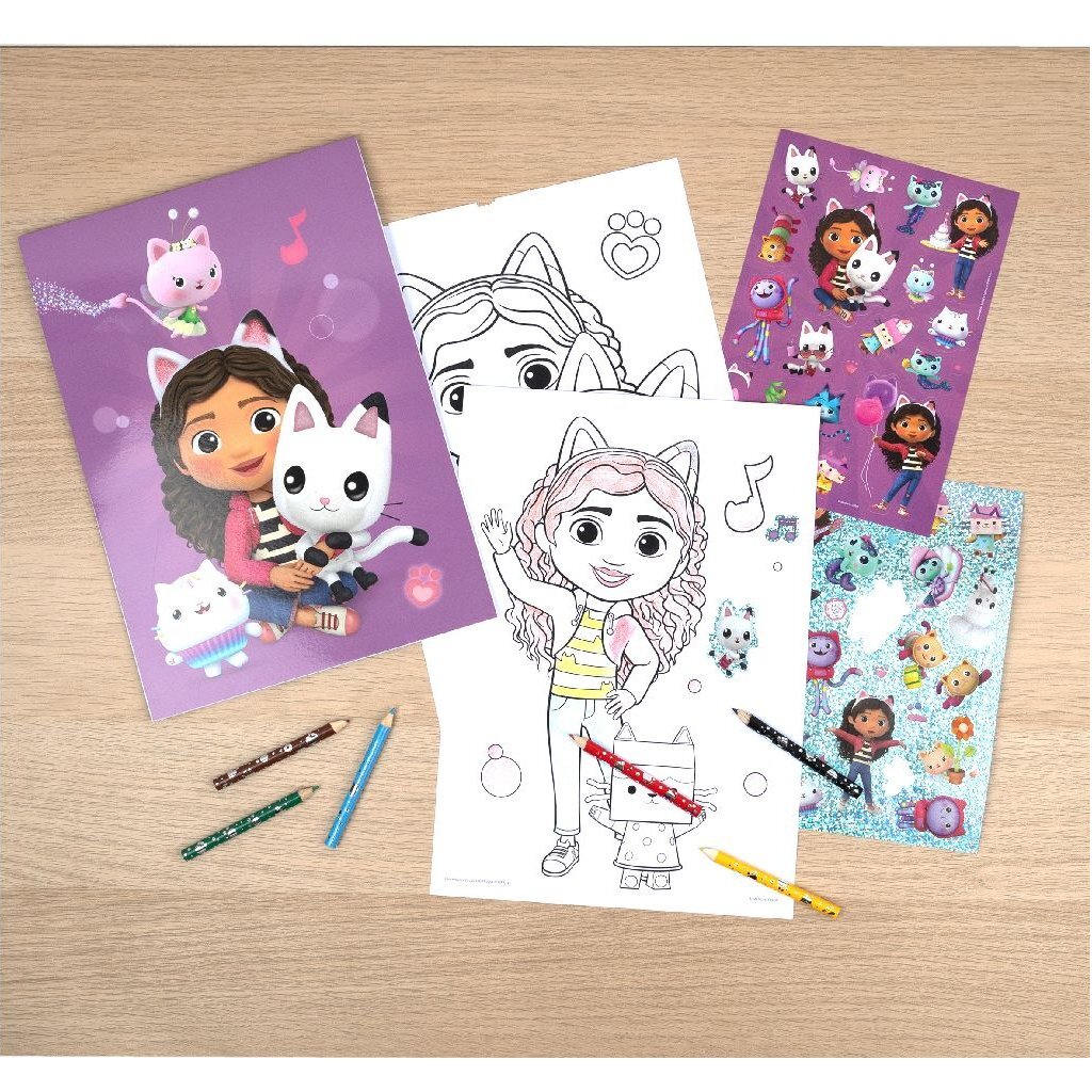 Wees altijd Ready to Go met deze kleurset in de vorm van een boekje met harde kaft, met 30 kleurplaten, 6 verschillende kleurpotloden en een stickervel!