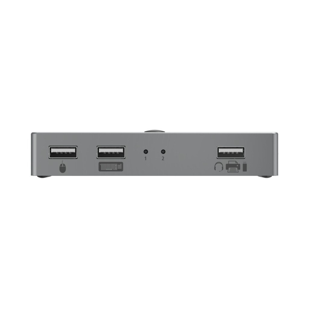 - Geen onhandig ompluggen van de apparaten tussen twee pc’s/notebooks, snel en eenvoudig omschakelen met een druk op de knop