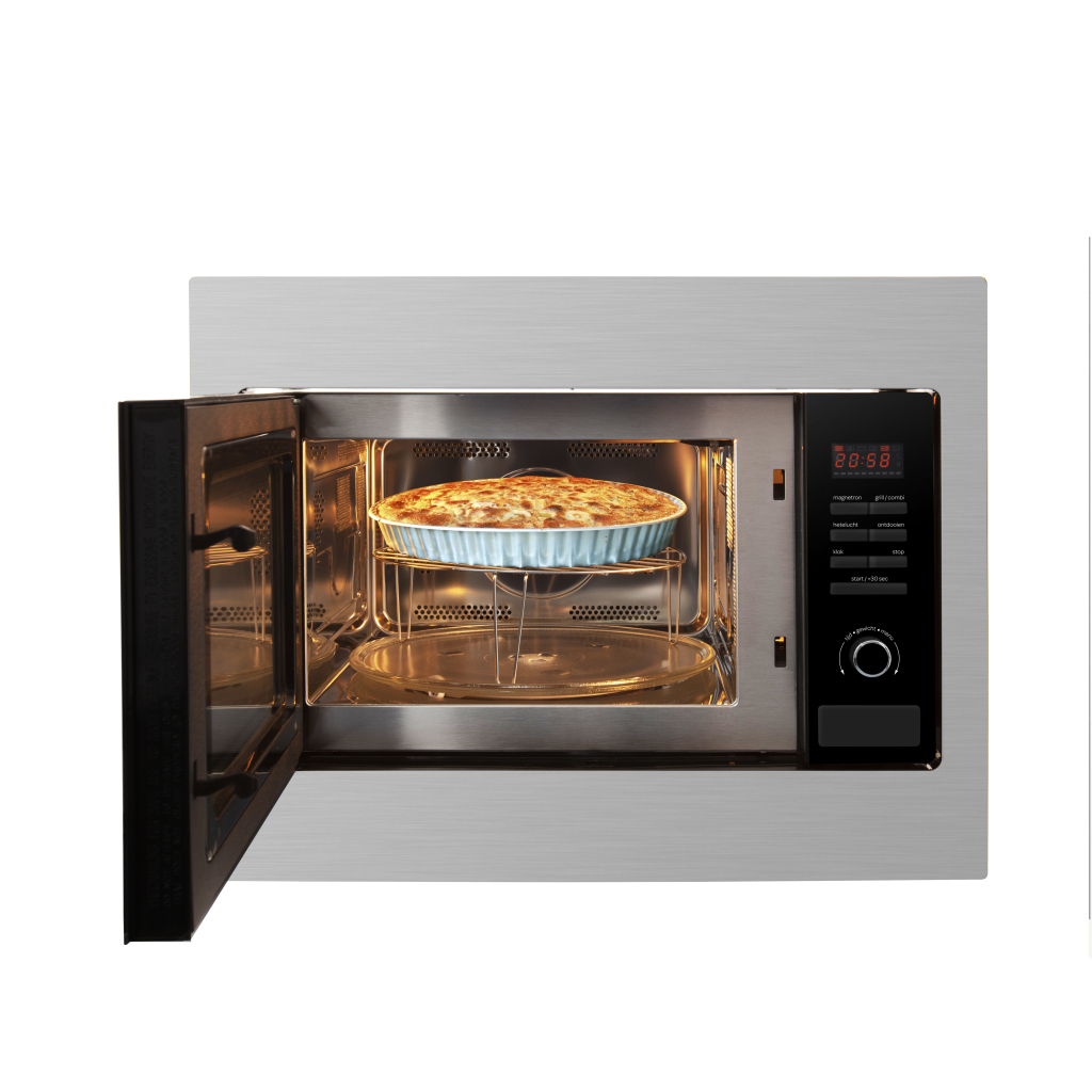 De Inventum IMC6125F inbouw combi magnetron heeft een inhoud van 25 liter. Naast de 5 magnetronstanden heeft de magnetron 4 combinatiestanden en 10 automatische kookprogramma’s. De combinatiestanden bieden je een legio aan mogelijkheden om je gerechten te bereiden. Met de digitale timerfunctie stel je gemakkelijk de bereidingstijd in.