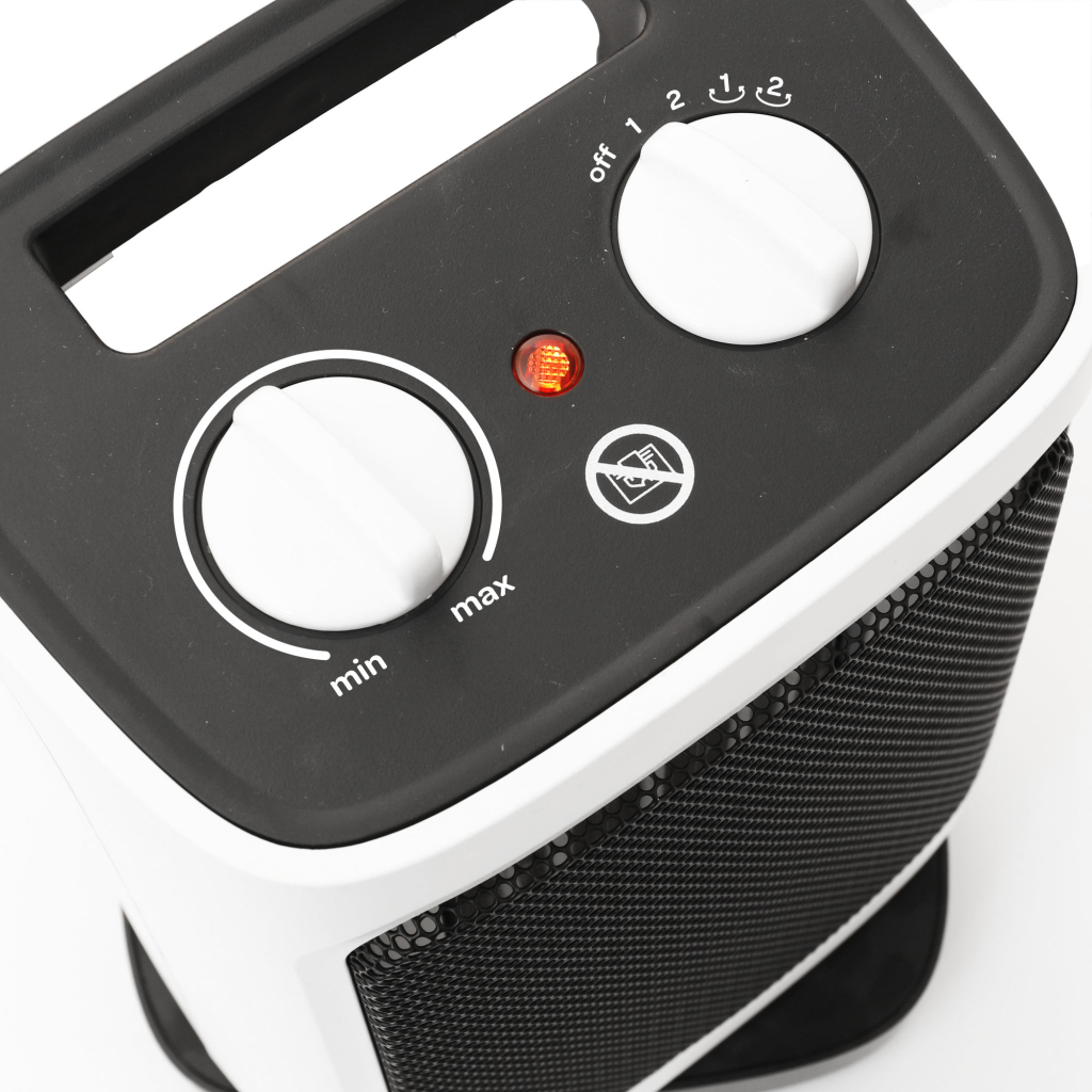 De Inventum KC222WOS keramische kachel is erg geschikt voor het aangenaam verwarmen van kleine ruimtes. Hij heeft 2 warmtestanden en 2 oscillatiestanden voor een groot bereik. De luchtwegen worden niet belast, want de stofdeeltjes kunnen niet verbranden in het verwarmingselement. Hij heeft een traploos regelbare temperatuur met vorstbescherming. De keramische kachel is voorzien van omvalbeveiliging en automatische uitschakeling bij oververhitting. Hij is compact van formaat en heeft een geïntegreerd handvat, zodat je hem gemakkelijk kunt verplaatsen en op iedere plek kunt genieten van extra warmte! Dit product is uitsluitend geschikt voor goed geïsoleerde plaatsen of voor incidenteel gebruik.
