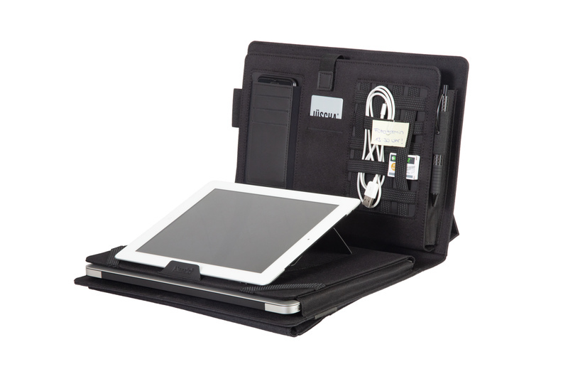 Mobile Office FIORI compartiment voor tablet, opberg vak voor mobile, opberg vak voor naamkaarten, multi organiser opberg vak, twee pennenlussen, tabletstaander. antraciet polyester ca. 34,5 x 27 x 4 cm