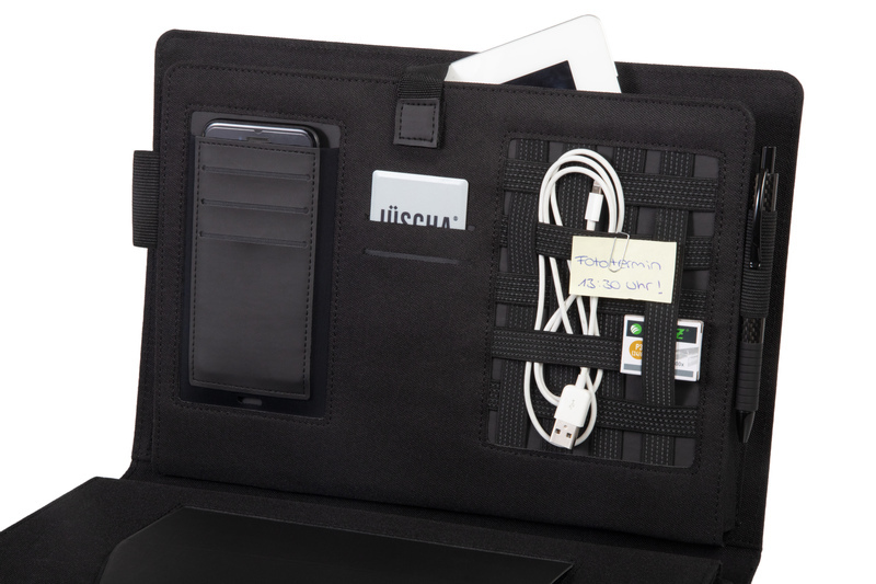 Mobile Office FIORI compartiment voor tablet, opberg vak voor mobile, opberg vak voor naamkaarten, multi organiser opberg vak, twee pennenlussen, tabletstaander. antraciet polyester ca. 34,5 x 27 x 4 cm