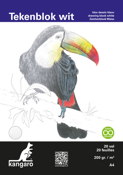 Kangaro K-5330 Tekenblok A4 200 Gr 20 Vel Wit Fijne Korrel Kopgelijmd
