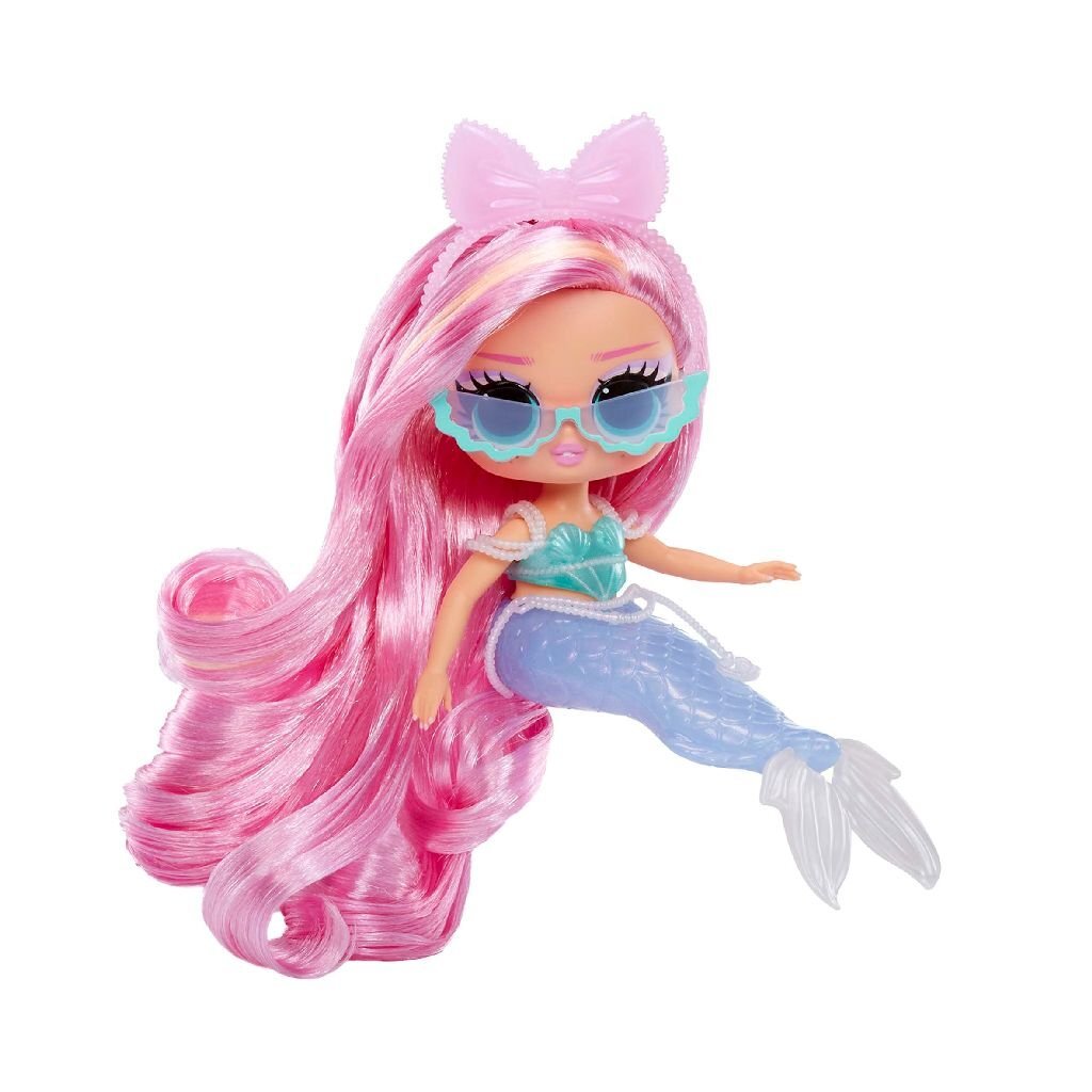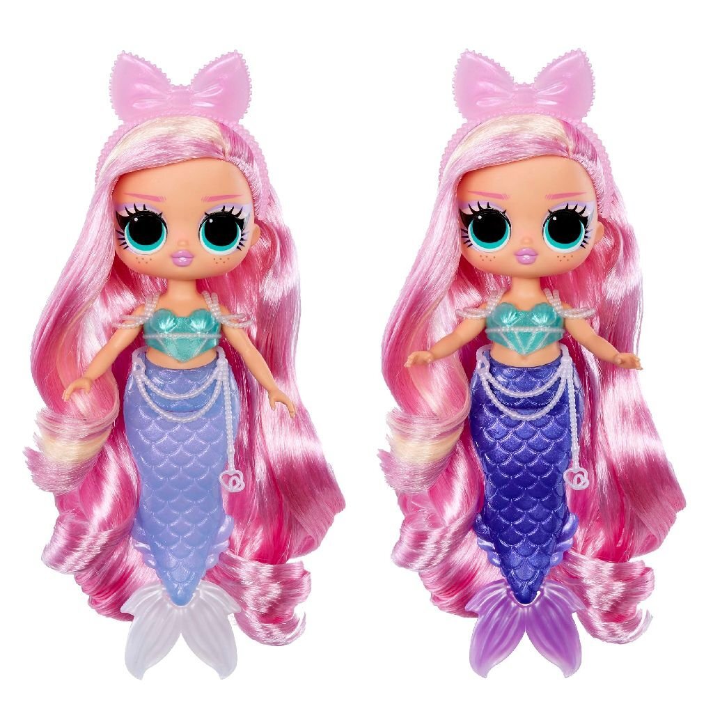 Duik in een betoverende wereld vol kleurenmagie en verrassingen met de gloednieuwe L.O.L. Surprise Tweens Mermaid Lola Waves-modepop met adembenemende accessoires om uit te pakken! Perfect voor in bad en om fantasierijk mee te spelen: het plezier spat ervanaf met Lola Waves met haar schitterende staart met kleurverandering en betoverende vin die echt kan bewegen! Doop je Tweens Mermaid-pop in koud water en kijk hoe de kleur van haar staart verandert van kobaltblauw in donkerlavendelblauw voor een magische onderwaterervaring! Kun jij raden in welke kleur haar parelwitte vin verandert? Vergeet niet om je pop te stylen met haar betoverende accessoires zoals haar zeebril, lieve haarband met strik en schattige parelriem met hartjes! Ze heeft een heel mooi gezichtje, prachtig haar, haar eigen modieuze zeemeerminnenlook en beweegbare ledematen voor heel veel houdingen. Ze kan bijvoorbeeld ook zitten! Ook kan ze stabiel op haar vin staan, waardoor je haar makkelijker kunt stylen!