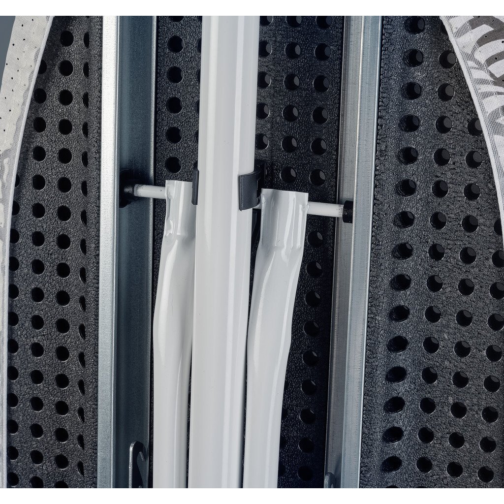 Ultralicht, stabiel en perfect geschikt voor stoomgeneratoren. De Leifheit Air Board Express M Solid heeft alles wat een moderne strijkplank hebben moet. Het kunststof strijkvlak is veel lichter dan een strijkvlak van strekmetaal en het onderstel staat absoluut stevig en stabiel. Het strijkvlak van geperforeerd puur katoen laat de stoom van het strijkijzer goed door en neemt het vocht optimaal op. Opzetten en weer opbergen is een fluitje van een cent, want de Air Board Express M Solid heeft een strijkvlak van ultralicht speciaal kunststof. Het strijkvlak van 120 x 38 cm rust op een robuust en absoluut stabiel onderstel van ronde 35 mm dikke buizen. In hoogte verstelbaar tot 98 cm voor vrijwel iedere lichaamslengte is de ideale werkhoogte in te stellen. De strijkplank heeft een vast metalen stoomgeneratorplateau, waarop alle gangbare soorten stoomgeneratoren passen. Met handige uitsparing om ook gewone strijkijzers veilig neer te kunnen zetten. Het stoomgeneratorplateau heeft verder een kleerhangerbeugel waaraan je de gestreken overhemden of jasjes op kunt hangen. Met snoergeleider voor strijken zonder dat het snoer steeds in de weg zit.