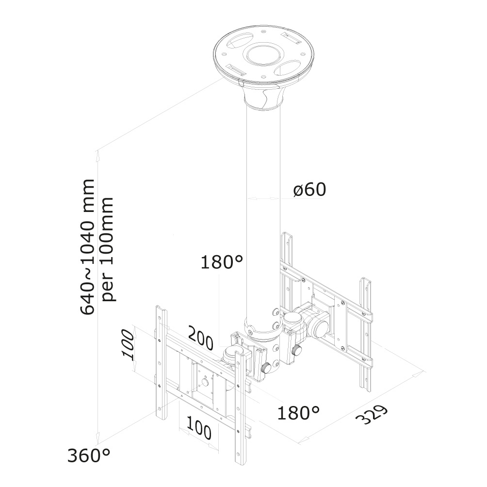 Met deze Newstar FPMA-C200D Flatscreen plafondsteun bevestigt u twee flatscreens aan het plafond. Door gebruik te maken van een plafondsteun profiteert u optimaal van de mogelijkheden van uw monitor of televisie. De steun is eenvoudig in hoogte te verstellen. Tevens kunt u het scherm kantelen, zwenken en roteren. Hierdoor creëert u de ideale kijkhoek. Kabels zijn netjes weg te werken in de kolom. De FPMA-C200 D heeft 1 draaipunt en is geschikt voor schermen t/m 40″ (102 cm). Het draagvermogen van dit product 20 kg. De plafondsteun is geschikt voor schermen met een VESA gatenpatroon van 75 x 75 mm t/m 200 x 200 mm. Heeft u een afwijkend (groter) gatenpatroon, dan kunt u dit oplossen met een van onze VESA verloopplaten. Door gebruik te maken van langere buizen (FPMA-CP100 t/m FPMA-CP200) kunt u de afstand tot het plafond verder vergroten. Deze kunnen additioneel besteld worden. Deze buis vervangt de originele buis.