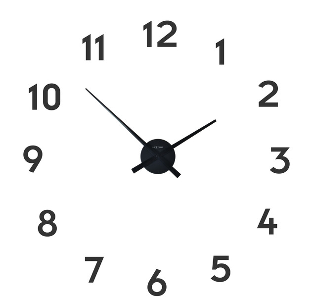 NeXtime NE-3074ZW Wandklok Dia. 48 Cm X 3 Cm, Aluminium, Zwart, 'Small Hands'