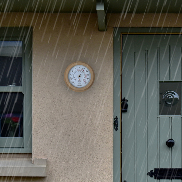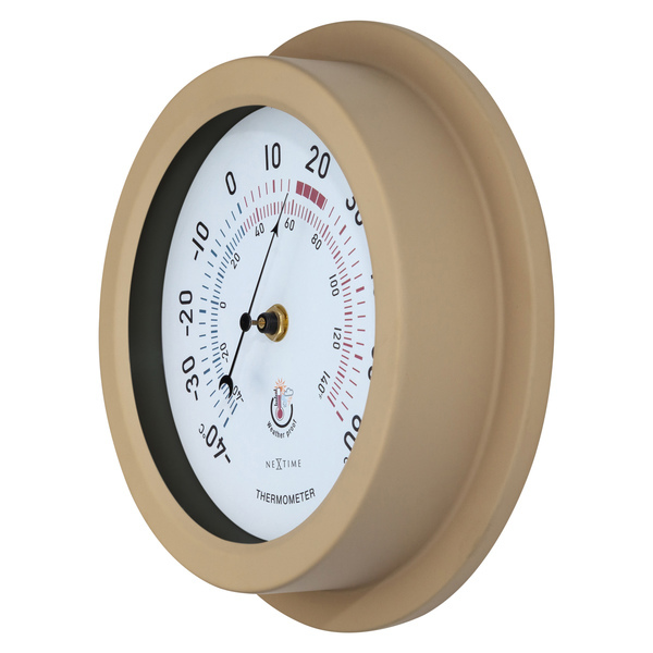 De NeXtime “Lily” is een metalen tuinthermometer die buiten gebruikt kan worden. Het gebruik van extra rubberen ringen om te voorkomen dat het water de kwetsbare delen van de thermometer bereikt, maakt deze meter bijzonder en weerbestendig. De thermometer is robuust en van metaal en met Ø 22cm past hij overal. De wijzerplaat is wit en heeft grote cijfers en blauwe en rode kleuren voor een goed begrip van de huidige temperatuur. Door de zwarte wijzer is de meter goed afleesbaar. De meter heeft geen batterijen nodig.
