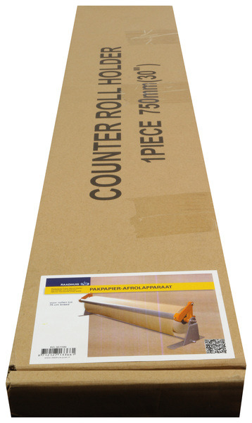 Metalen papierafroller van hoogwaardige kwaliteit geschikt voor rollen inpakpapier van maximaal 750mm breed. Het frame is voorzien van een stevig onderstel. Kan ook bevestigd worden aan muren of tafels.