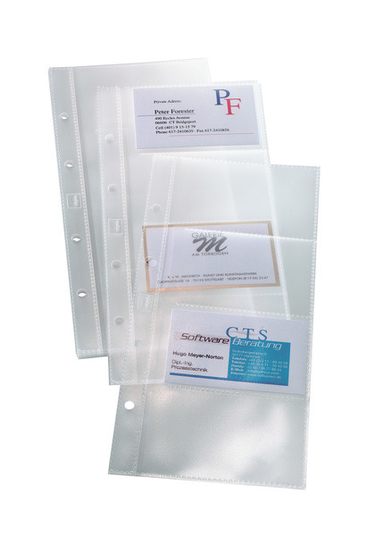 Showtassen voor visitekaartringband. Één rij. Doorzichtig. 10 hoesjes. Kunststof. Voor max. 80 kaartjes (max. 90×58 mm).