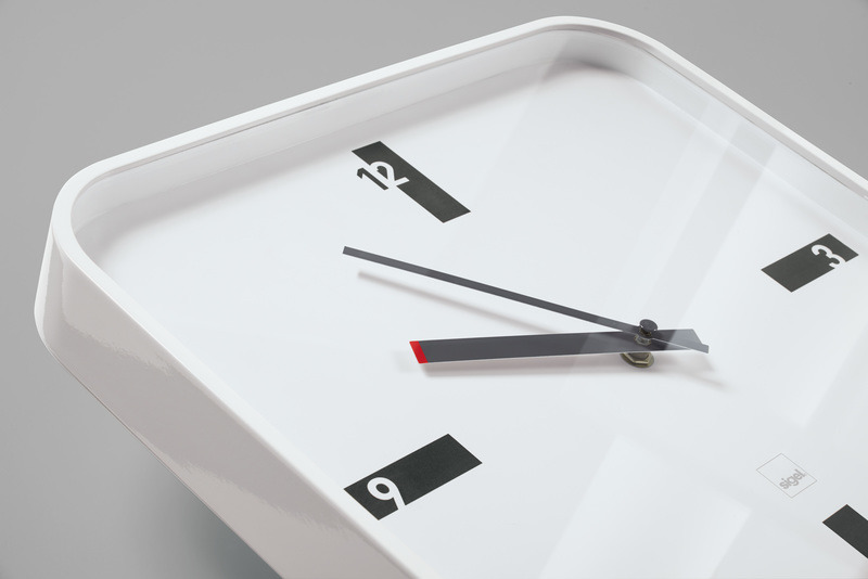 Kwalitatief hoogwaardige wandklok in modern app formaat. Hoogwaardige glanzende voorkant van mineraalglas in combinatie met een ABS-kunststof kast in hoogglans. Puristisch uitgevoerde wijzerplaat met grijze blok-elementen. Geometrische wijzervorm in donkergrijs. De urenwijzer met rood designaccent. Geruisloos uurwerk en geluidloze wijzers. Afmeting 350 x 350 x 45mm. Kleur wit. Loopt op 1 x 1,5V AA batterij (niet meegeleverd). Garantie; 5 jaar-www.sigel.de/garantie