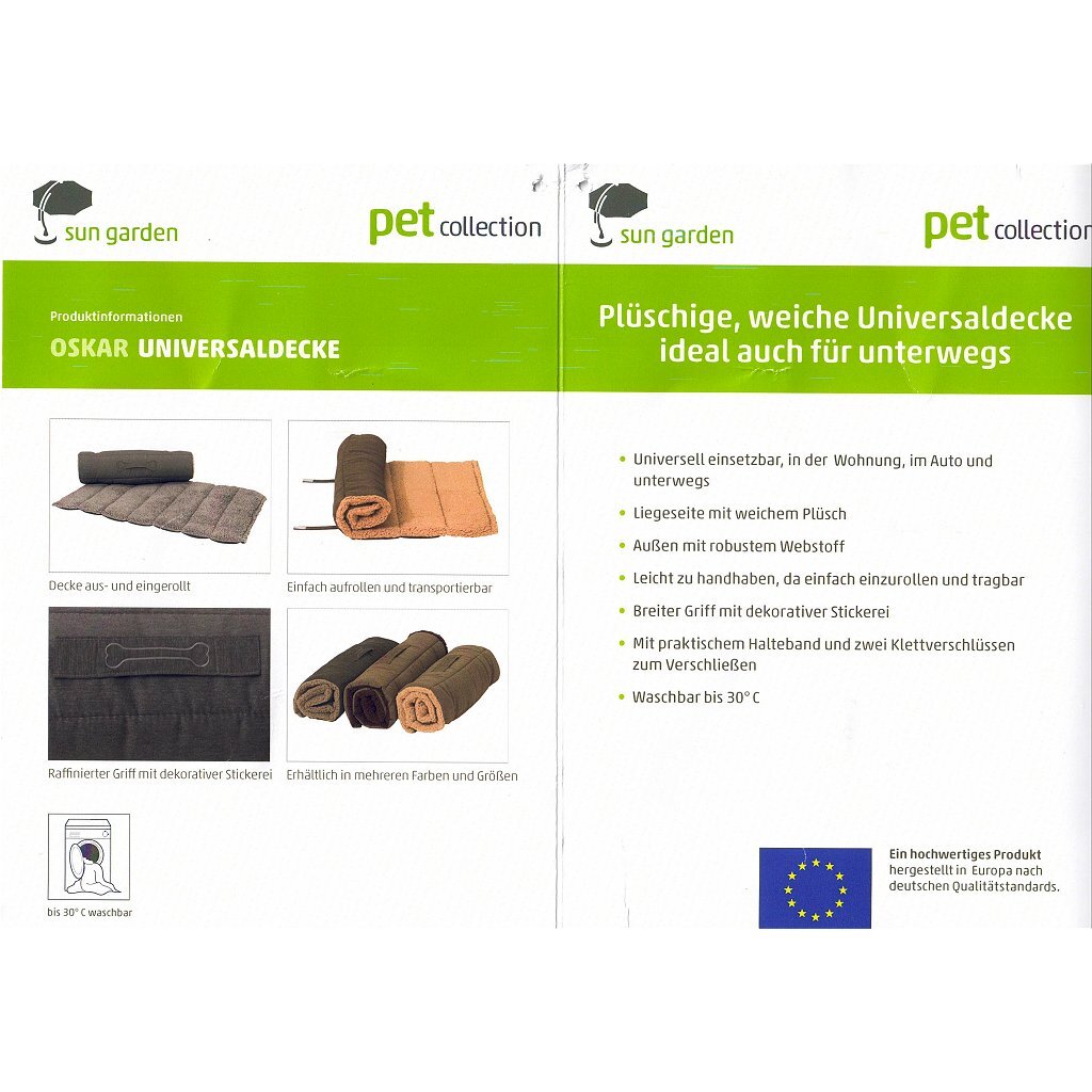 Het Duitse bedrijf Sun Garden, bekend vano.a. kwaliteitsmatrassen en boxsprings, heeft nu ook luxe kleden en (orthopedische) kussens voor huisdieren ontwikkeld.Het hondenkleed is overal te gebuiken, thuis, in de auto en onderweg.Het Oskar hondenkleed is ideaal voor op reis.