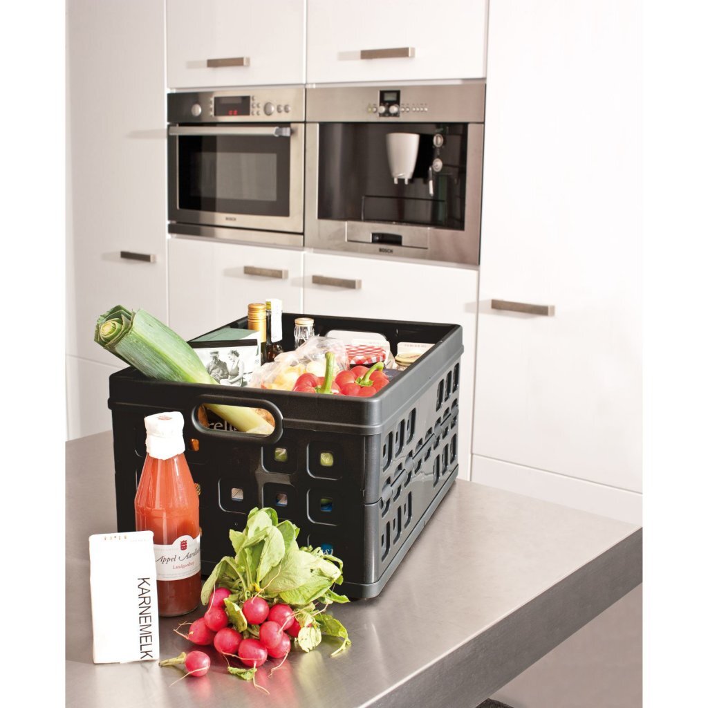 Lekker boodschappen doen met de Square vouwkrat met 32L opslag- en vervoersruimte. Een boodschappentas biedt vaak niet genoeg ruimte of ondersteuning voor je levensmiddelen. Sunware’s Square-kratten zijn daarom speciaal ontworpen voor het vervoeren en opbergen van levensmiddelen. Toch zijn er nog heel wat meer toepassingen te bedenken voor deze kratten. Denk bijvoorbeeld aan gebruik op het sportveld voor bidons en ballen etc., of op de camping voor de afwas en je kampeerspullen!De Square vouwkratten van Sunware zijn robuust en stevig en laten zich compact opbergen wanneer ze niet in gebruik zijn doordat ze eenvoudig inklapbaar zijn. Ideaal dus voor onderweg! De 32L Square vouwkrat is een handige mid-size krat. Door de twee handgrepen aan de zijkant is de krat makkelijk te tillen. Kleur: zwart.