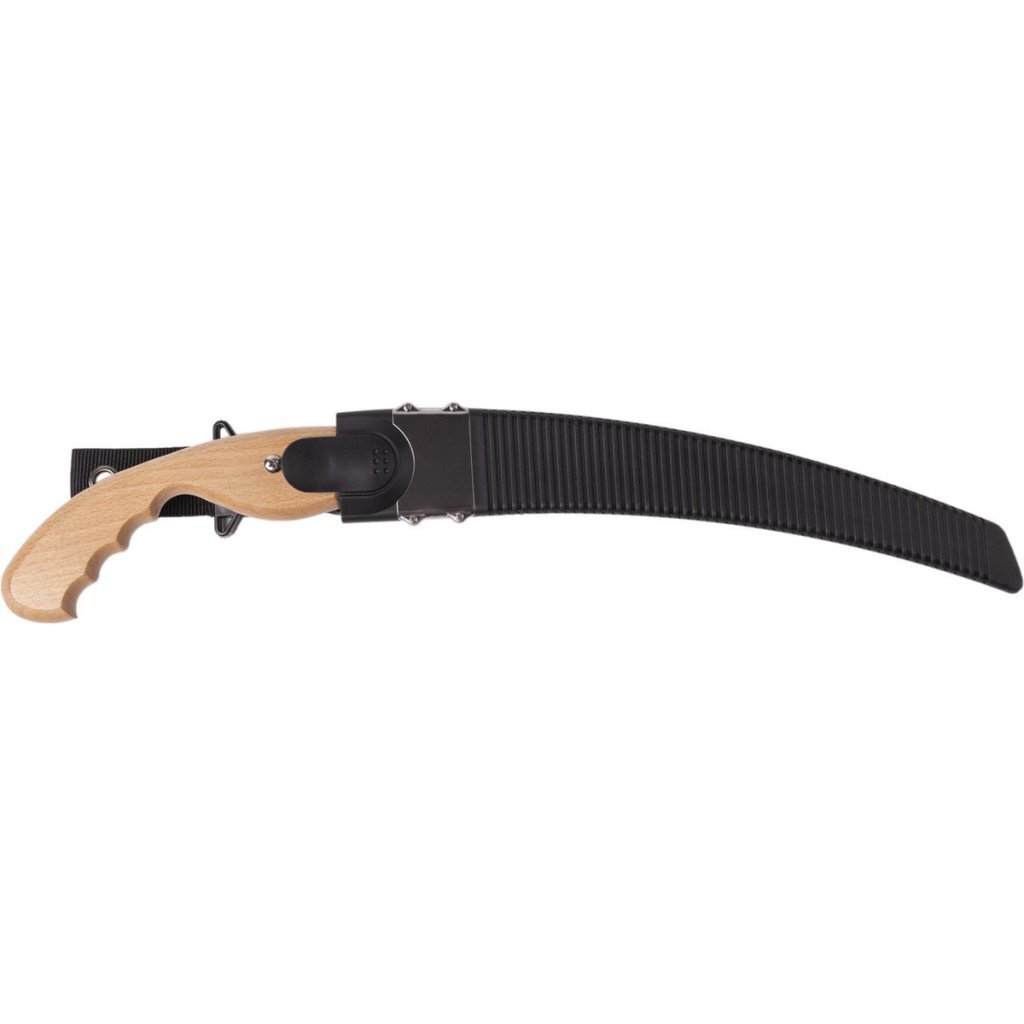 - De kunststof houder met riemlus beschermt tegen verwondingen en beschadigingen, helpt bij transport en opslag en stelt je in staat om veilig met de zaag in de boom te klimmen