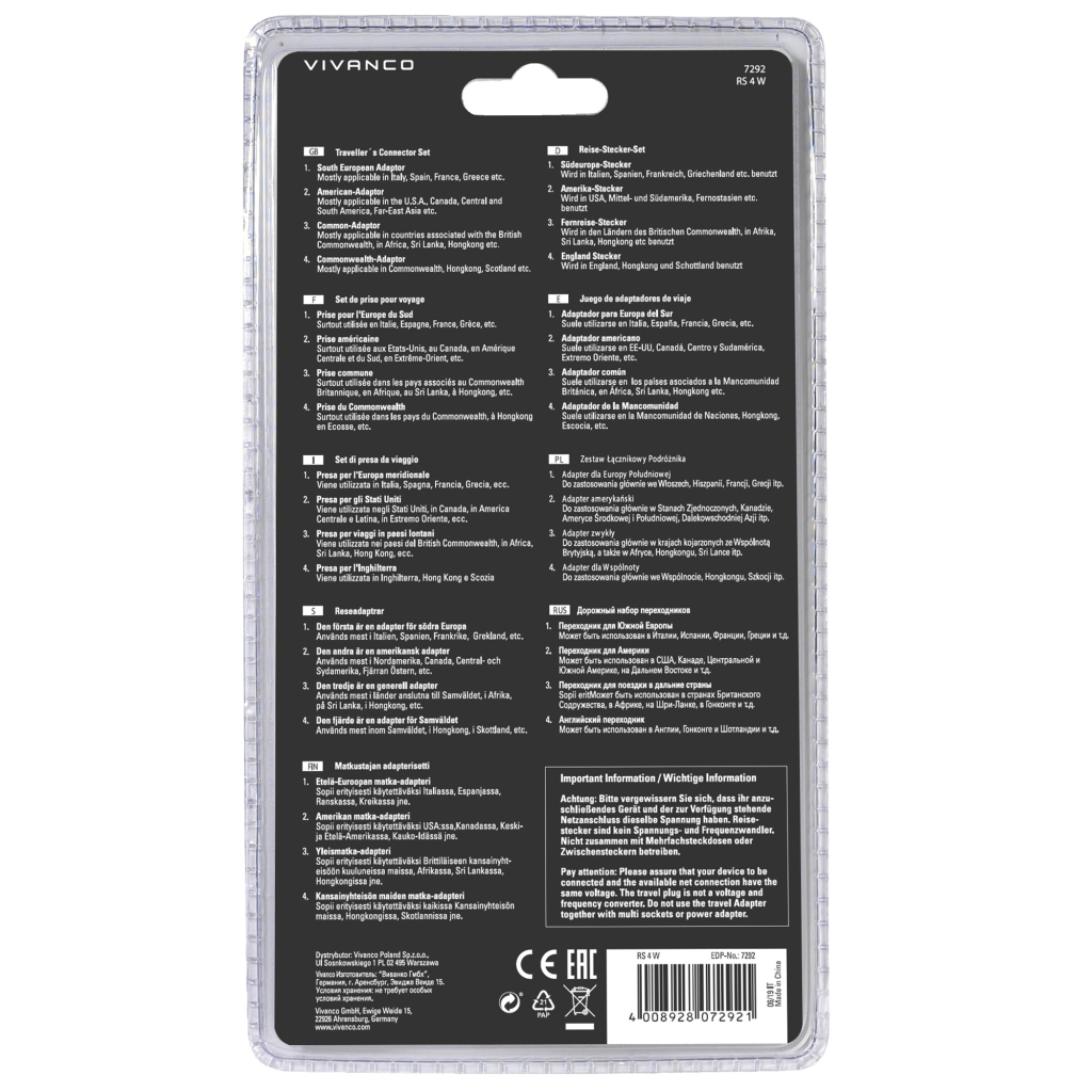 - Let op: deze reisstekkers zijn niet voor: Argentinië, Australië, China, Israël, Nieuw-Zeeland, Zwitserland