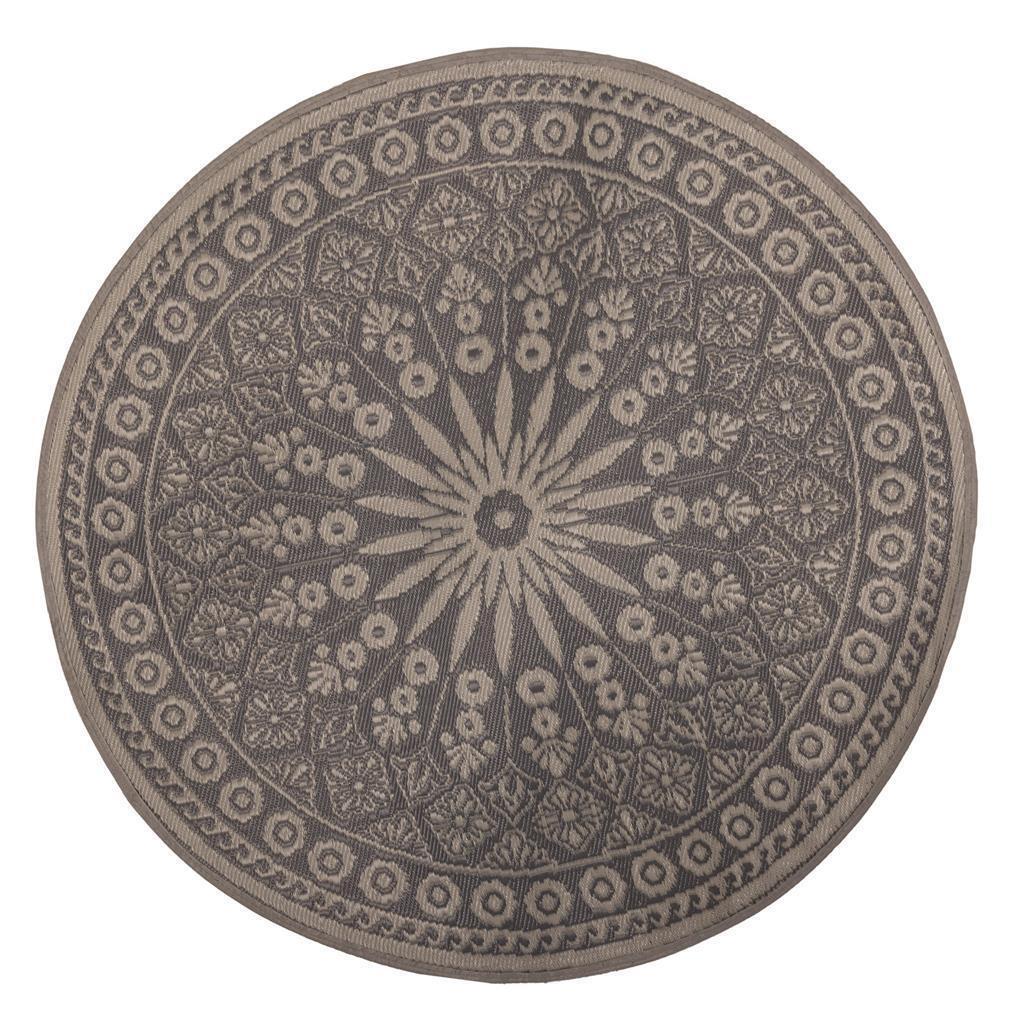 Esschert Design rond tuintapijt. Het tapijt is dubbelzijdig te gebruiken en is waterdoorlatend. Het is bestand is tegen hoge temperaturen en vrij slijtvast. Kleur grijs. Afmeting 170 x 0,4 cm.Materiaal polypropyleen, voelt zacht aan.